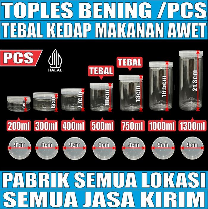 TOPLES TEBAL 60GR 200ML 300ML 400ML 500ML 750ML 1000ML 1300ML PLASTIK N SEAL JAR SILINDER BENING JSP - TPLS 200ML 35GR