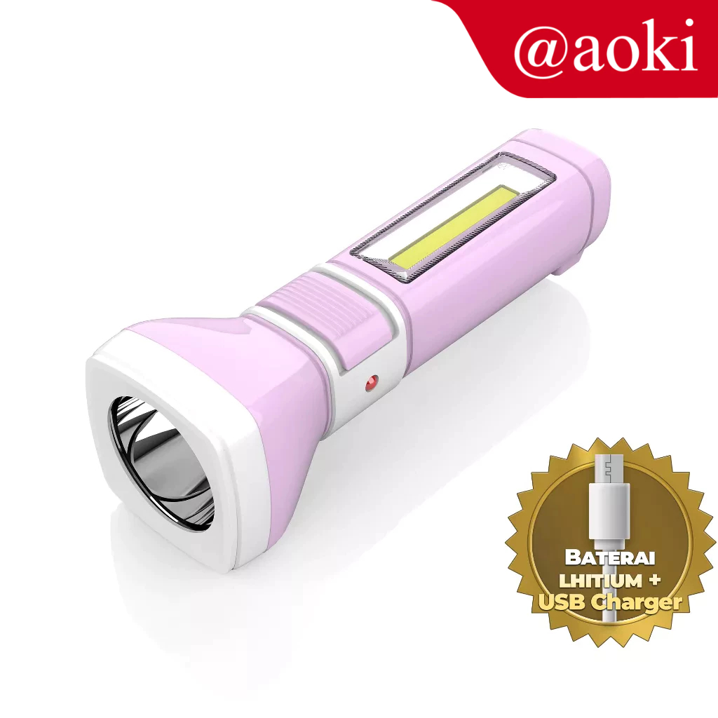 Senter Aoki Tangan Led Baterai Lithium Tahan Lama Dengan Warna Ungu Dan Biru
