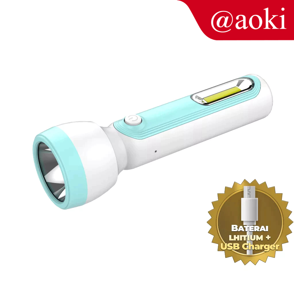 Senter Aoki Tangan Led Baterai Lithium Usb Charging Terang Tahan Lama