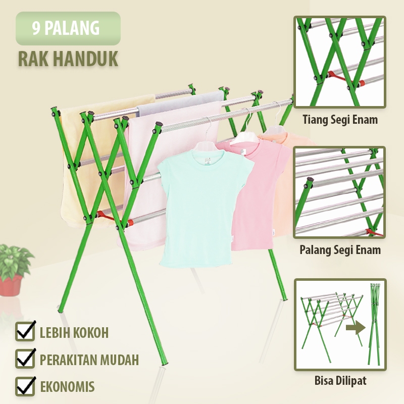 Jemuran Pakaian Rak Handuk Lipat Galvalum Portable