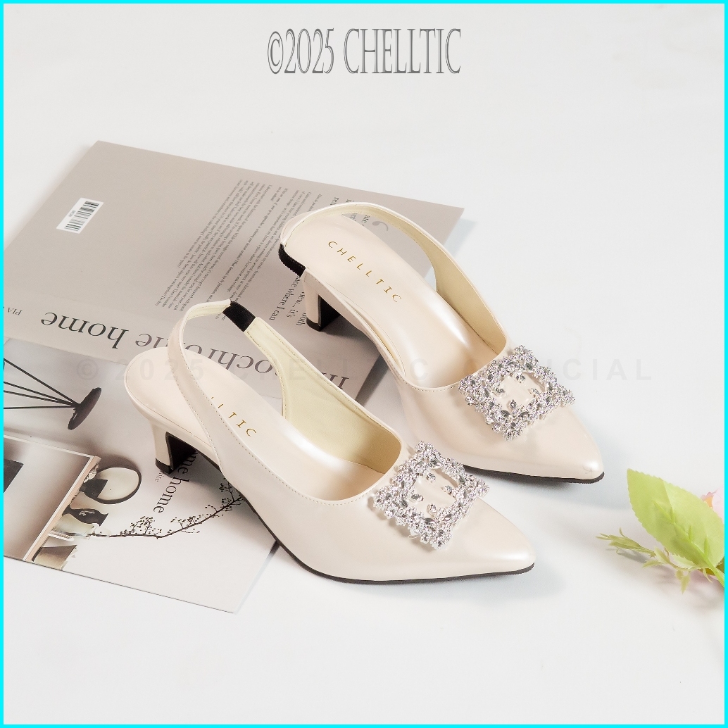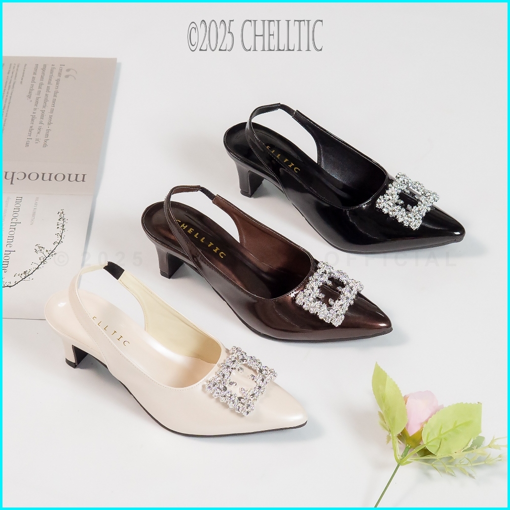 Chelltic - Heels Wanita 5cm Elegan Pointed Toe Slingback Manik-manik Blink Untuk Kerja Kondangan Dan Formal Sepatu Pesta