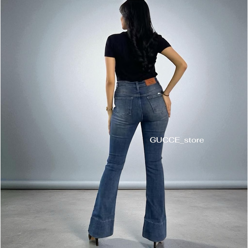 Jennie-HighWaist Cutbray Jeans Celana Flare Panjang Stretch Wanita Retro Vintage Lipat Bawah