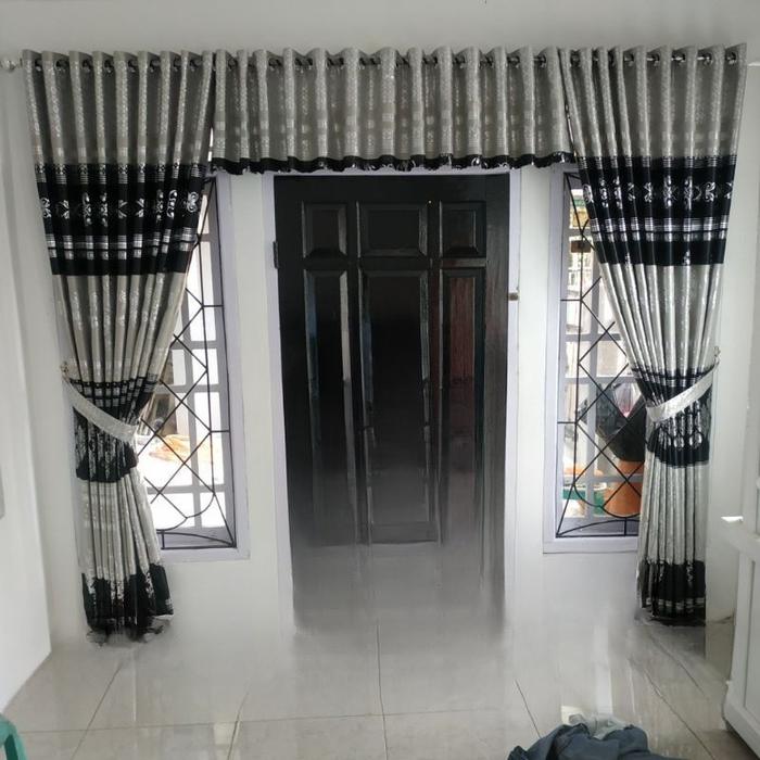 Satu Set Gorden Blackout Poni Rempel Atas Pintu Tirai Jendela Ruang Tamu Minimalis Hordeng Motif