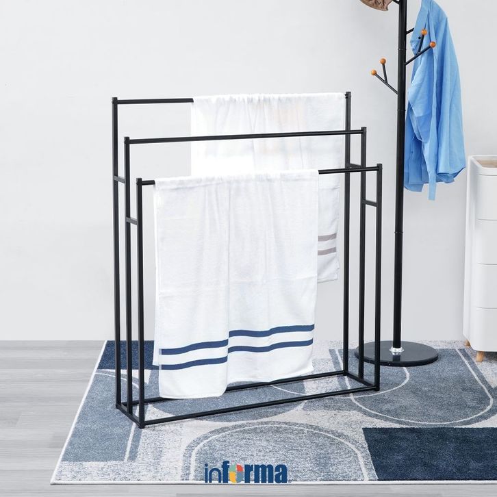 Informa 95x24x110 cm Titan Jemuran Handuk - Hitam Tempat Jemur Anduk Drying Kain Lap Badan Mandi Towel Pakaian Rak Peng