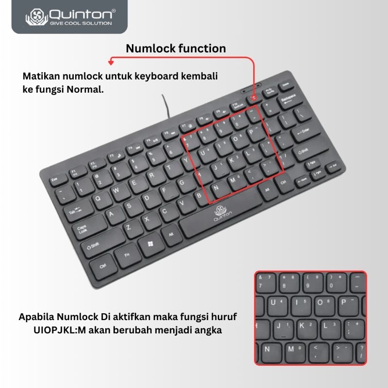 Keyboard Mini Usb Wired Quinton K1000 78key Hitam Putih