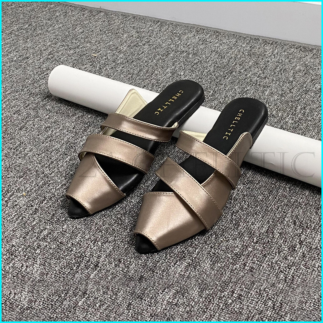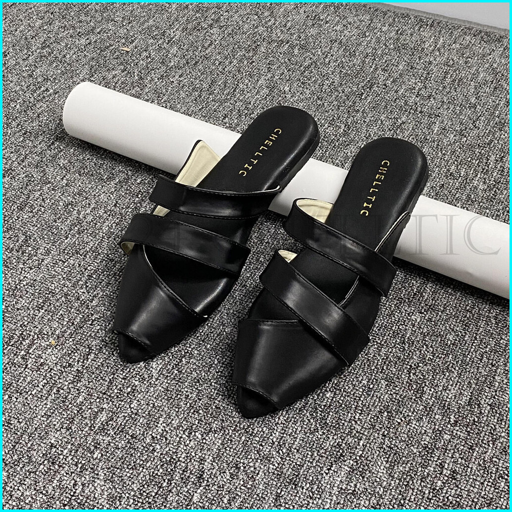 Chelltic Sandal Selop Wanita Kekinian Terbaru Sendal Mules Flatshoes Hak Datar Slop Slip On Bustong Casual Trendy Cewek