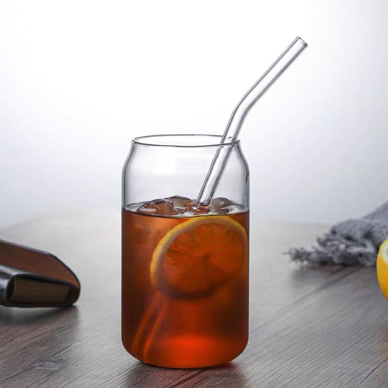 Gelas Kaca Gelas Mug / Gelas Jar Gelas Kaca Estetik Cafe 350 / 550ML / Tumbler Kaca Tutup Kayu Estetik Dengan Sedotan Ka