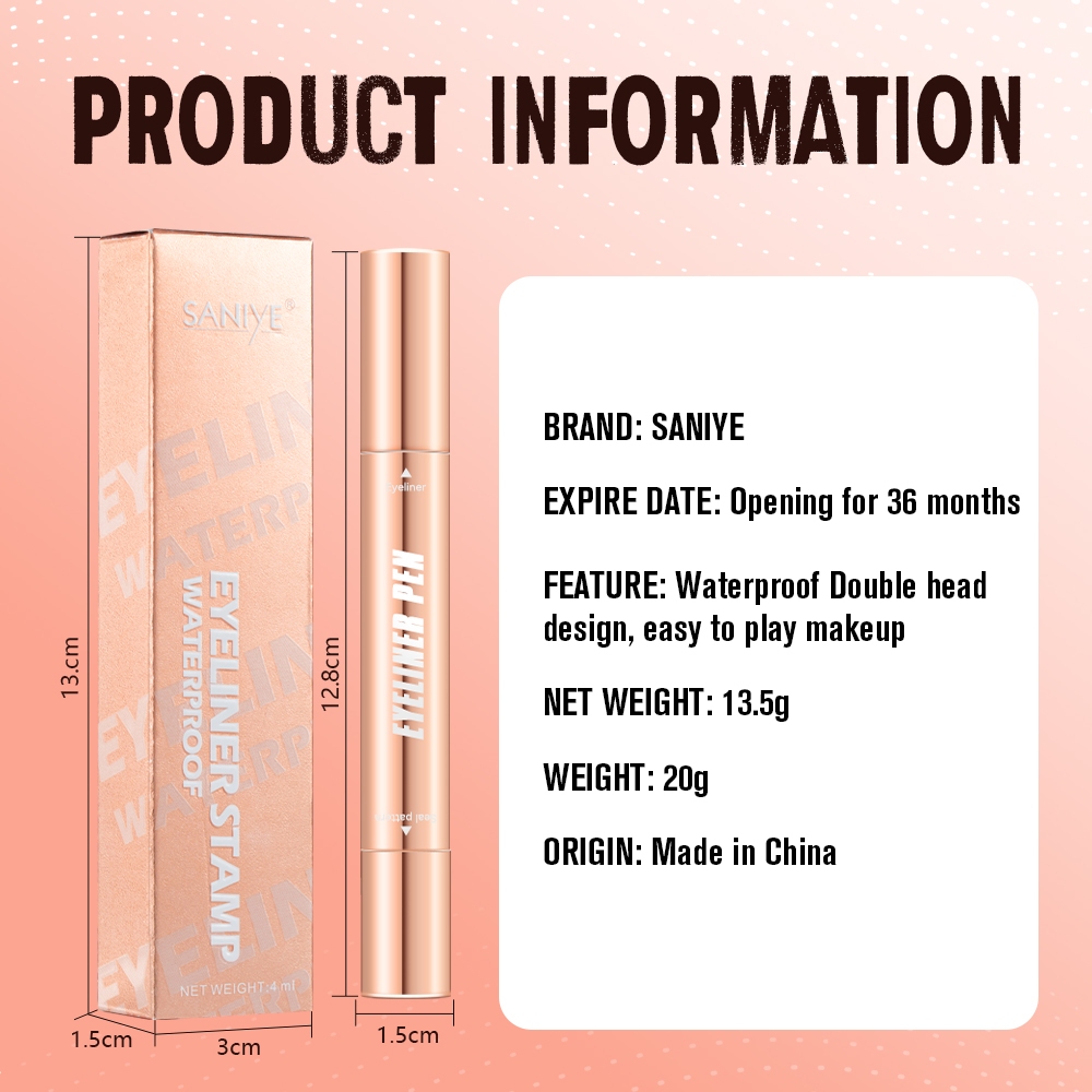 Eyeliner Saniye Black Eyeliner Stamp Waterproof Liquid Profesional Makeup M438A Bpom