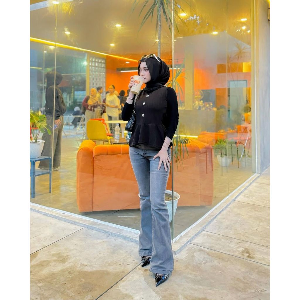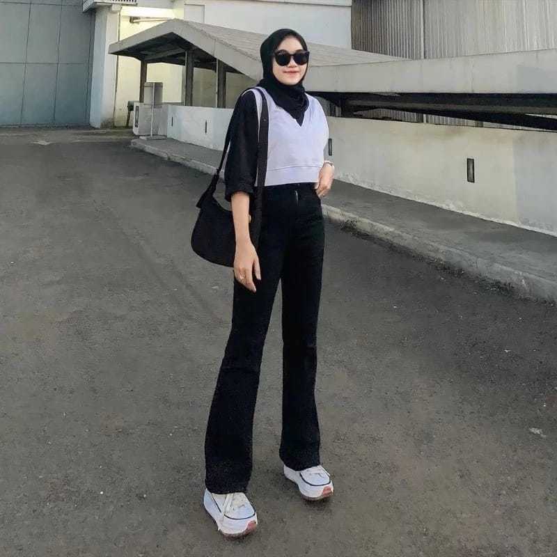 Highwaist Cutbray Jeans Wanita Streach - Celana Cutbray Jeans Highwaist Wanita Streach Kekinian