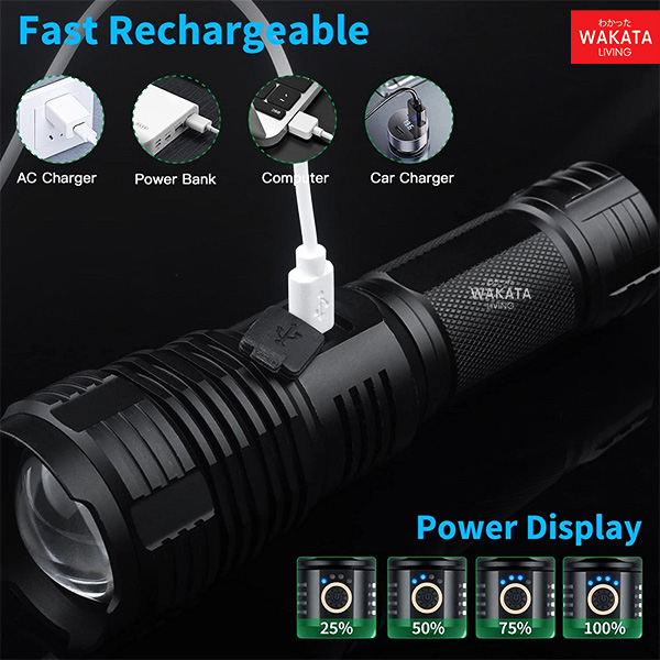Senter Led Super Terang Mini Rechargeable Warna Hitam Untuk Pencahayaan Luar Ruangan
