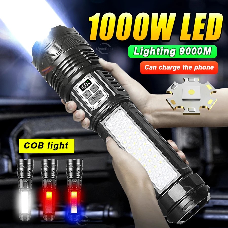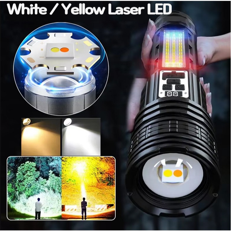 Senter Led Super Terang Dua Warna Bisa Dicas Tahan Air Powerbank Cahaya Kuning Dan Putih Dengan Lampu Strobe