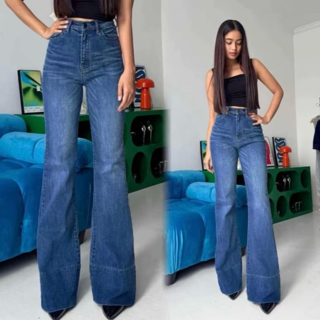 Jennie Cutbray Jeans Higwaist Lipatan Kaki Besar Jeans strecht Wanita