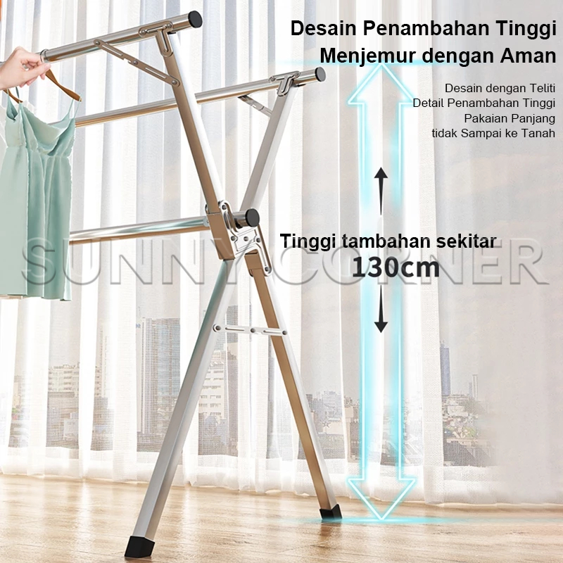 Jemuran Baju Lipat Sus-304 2.4M Portable Tahan Karat Indoor Outdoor