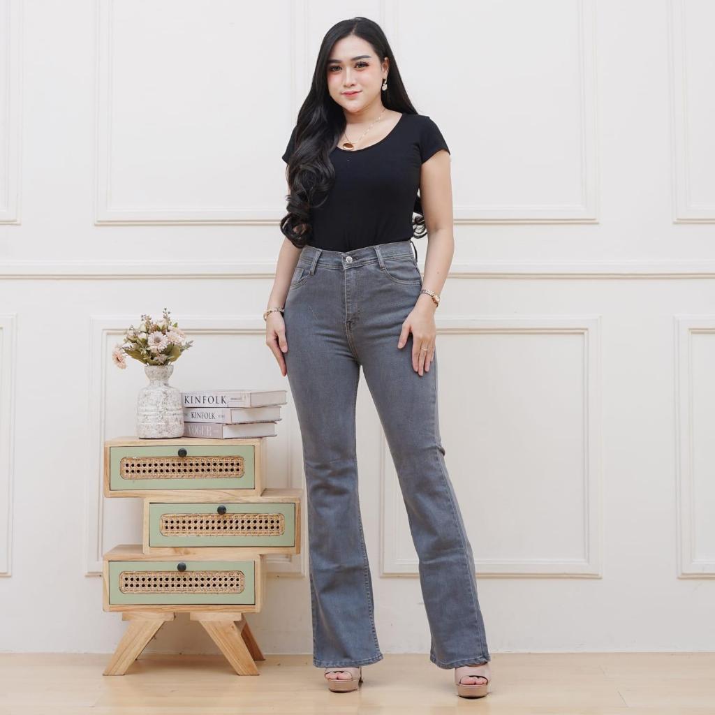 HIGHWAST Jeans Cutbray Wanita Kekinian LOSEEPANTS Cewek Panjang Stretch