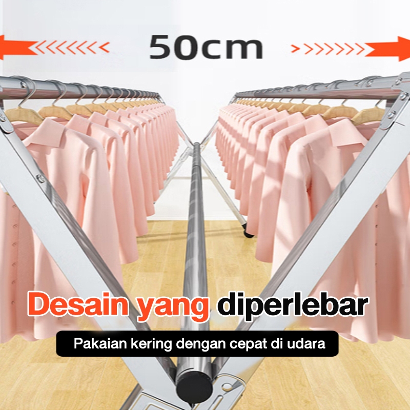 Jemuran Baju Stainless 2.4M Sus-304 Lipat Portable Tahan Karat
