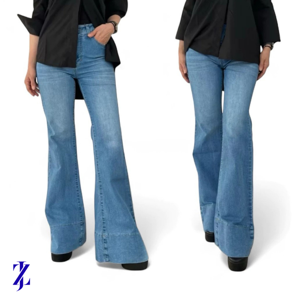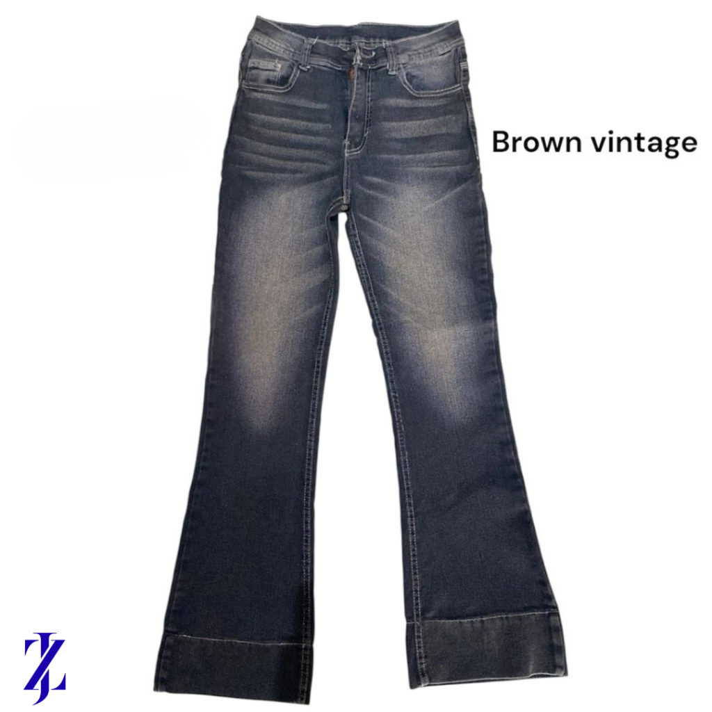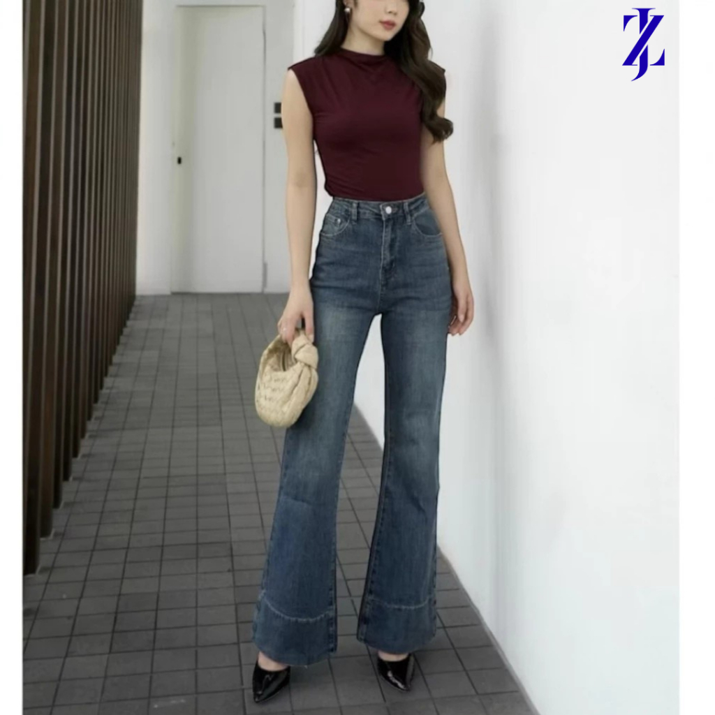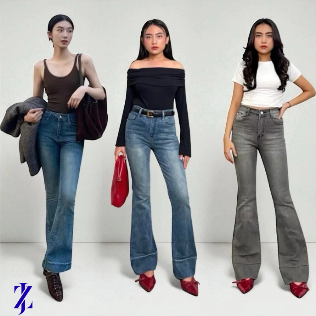 Jennie-HighWaist Cutbray Jeans Celana Flare Panjang Stretch Wanita Retro Vintage Lipat Bawah