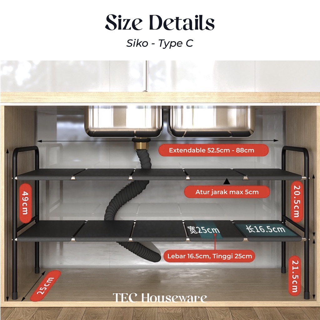 Rak Penyimpanan Organizer • TEC • SIKO Rak Susun Serbaguna Rak Bawah Wastafel Rak Penyimpanan Dapur Panci Flexible Rak Serbaguna Dapur Bawah Sink Stai