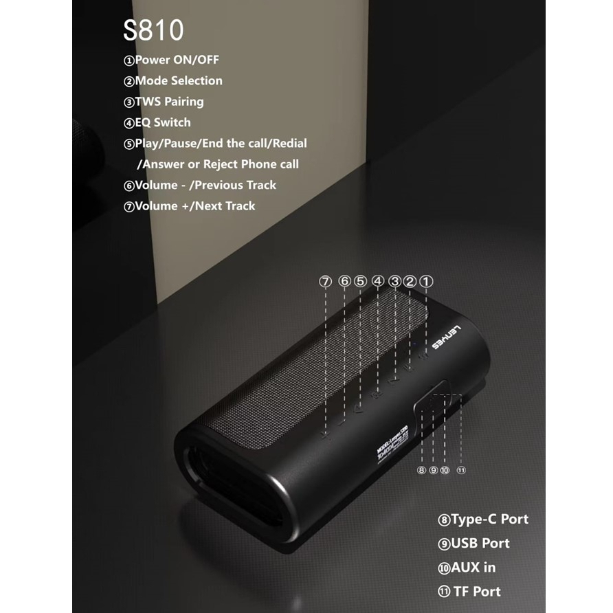 Lenyes Speaker bluetooth S810 80W BOMBASS Speaker Wireless blutut 5.0 DSP hifi stereo portable powerfull bass TWS