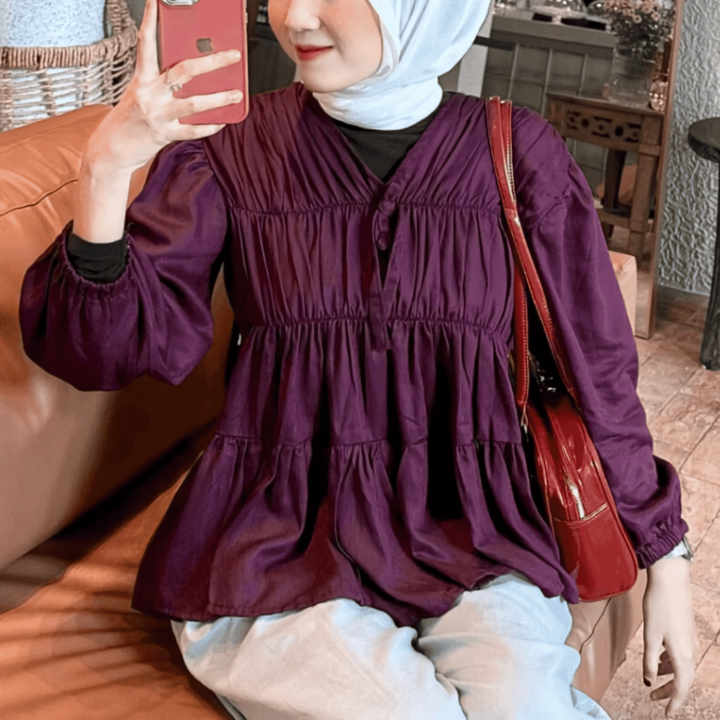 Blouse Mireya Fmly Kerut Dada Rayon Lengan Panjang Terbaru