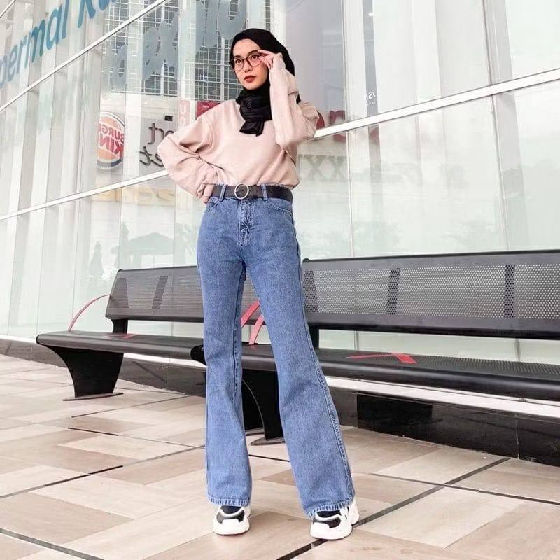 Cutbray Highwaist Jeans Wanita - Celana Jeans Wanita Cutbray Stretcht Kekinian
