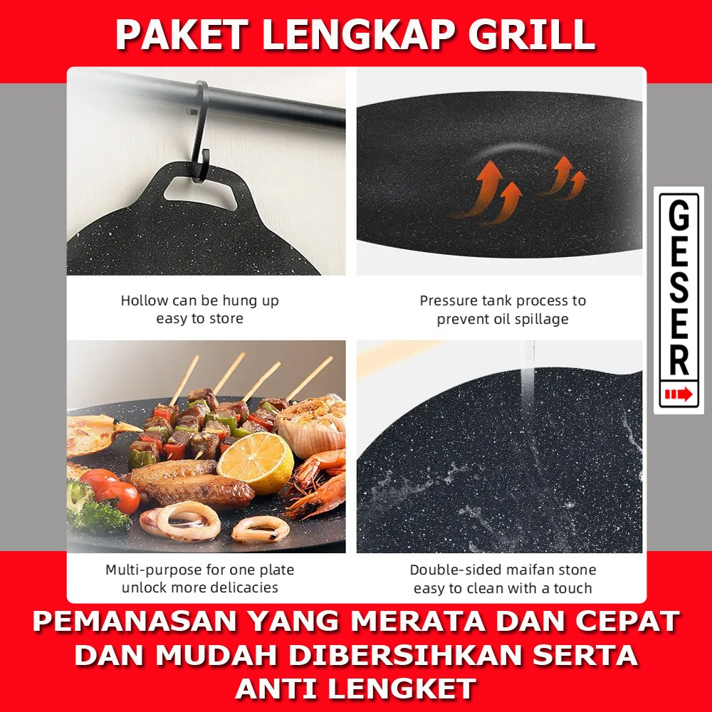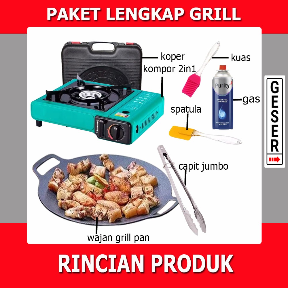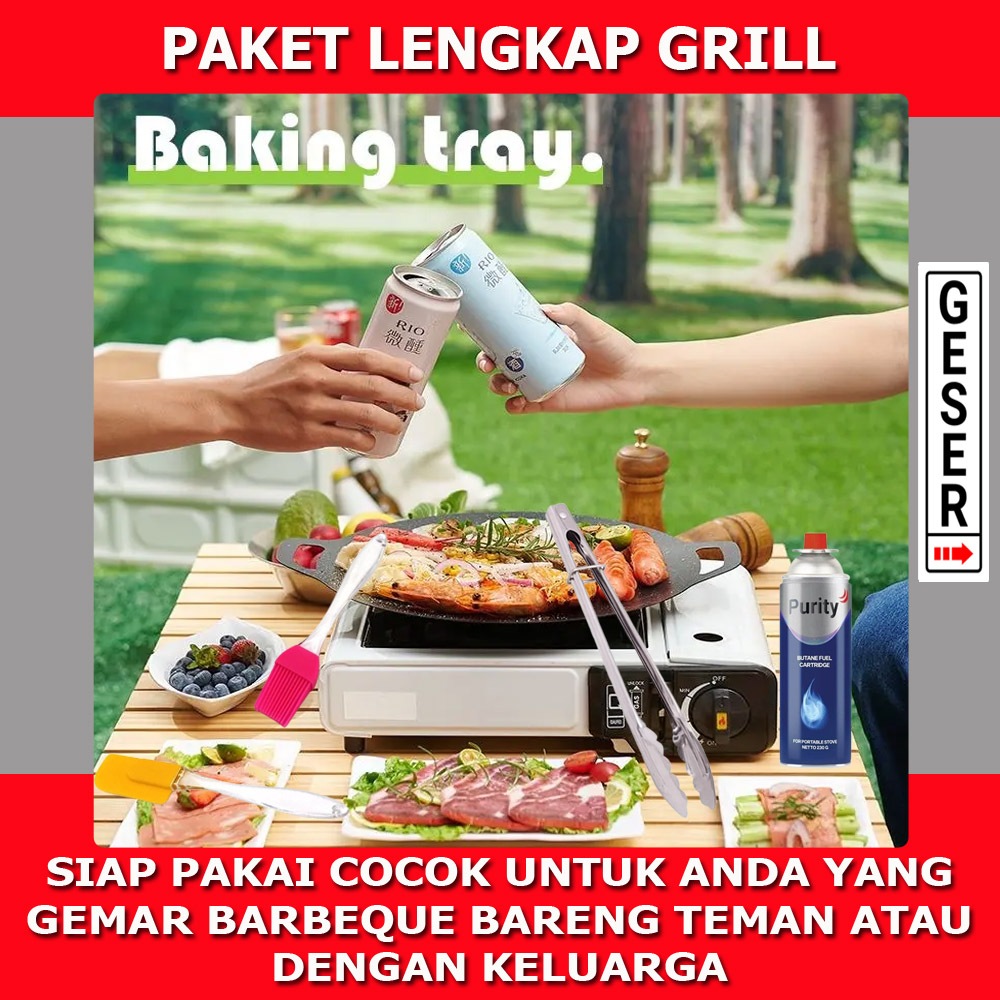 Paket Kompor Portable Plus Wajan Konduksi Panggangan Korean Anti Lengket Serbaguna Paket BBQ Paket Grill Panggangan