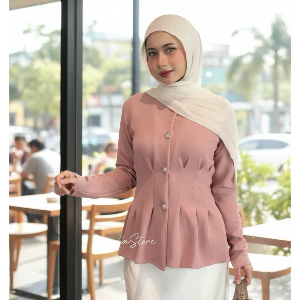 Blouse Peplum Fitbody Fifi Korean Style Lengan Panjang Kekinian