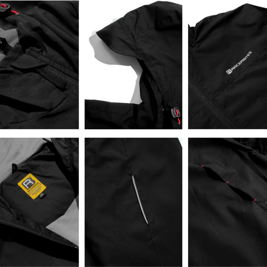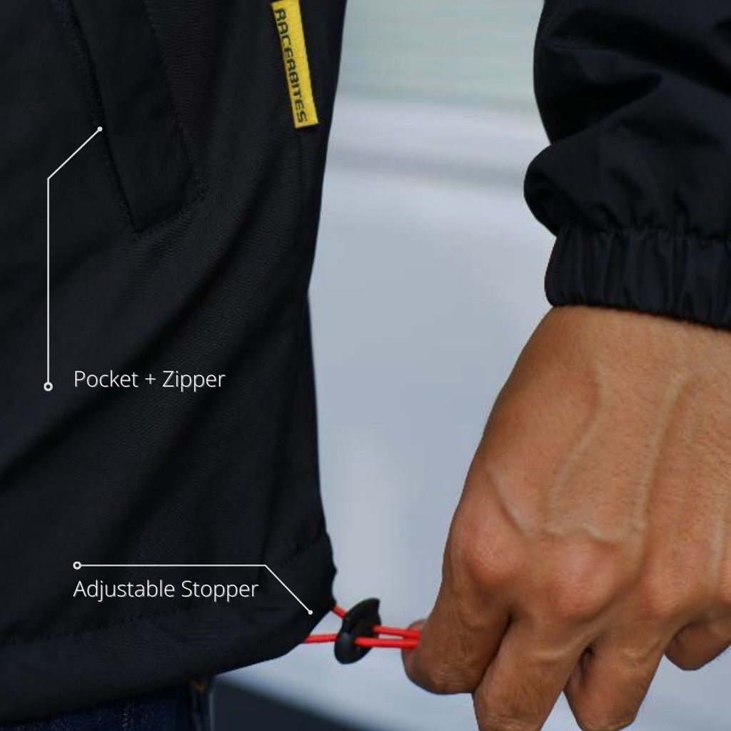 Jaket Motor Pria Racerbites | Jaket Windbreaker Warna Hitam | Jaket Anti Angin dan Hujan Ringan