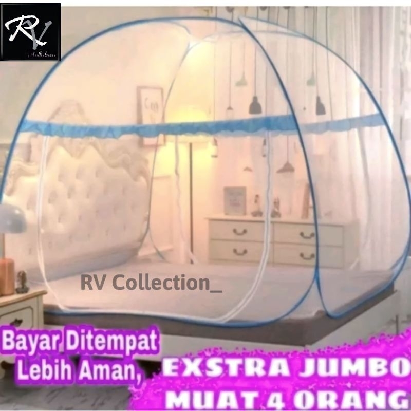 Kelambu Lipat Tenda Kelambu Nyamuk Jumbo Anti Nyamuk Bawah Bolong 4 Sudut