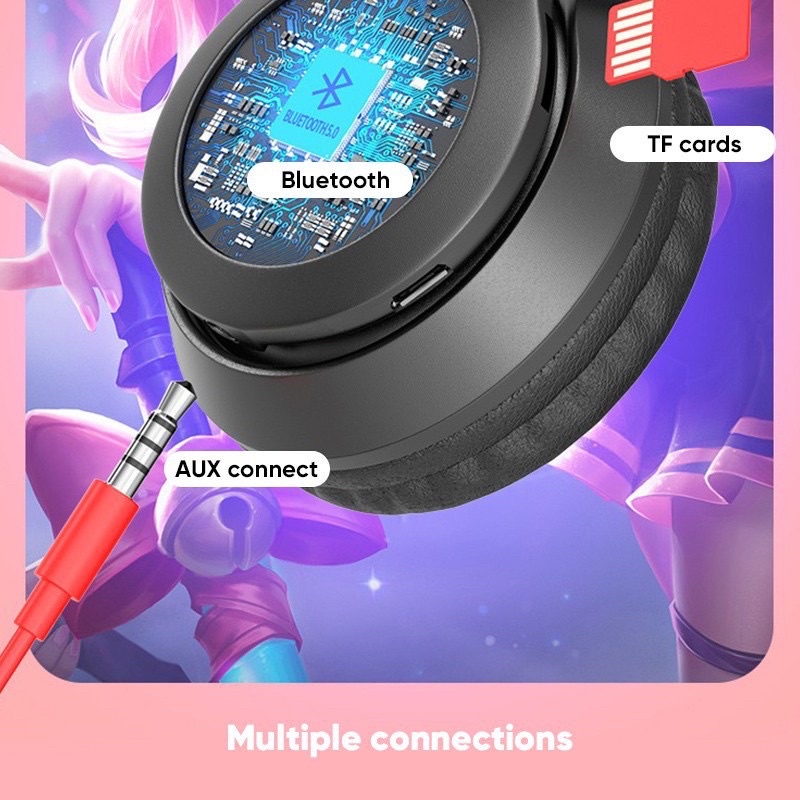 Headphone Bluetooth P47m Gaming Telinga Kucing Rgb Super Bass