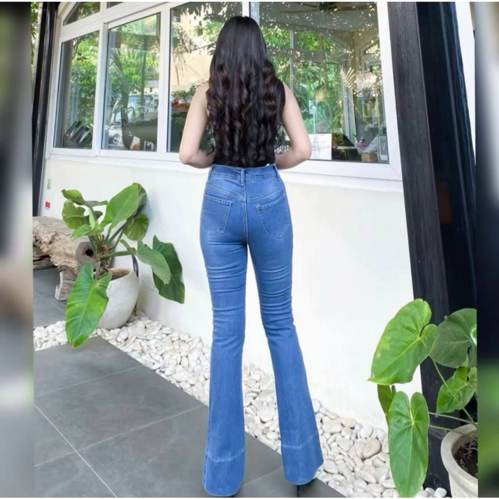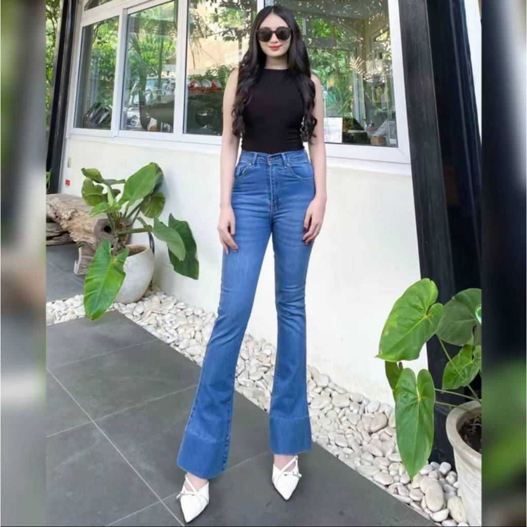 Jennie Cutbray Jeans Highwaist Lipatan Kaki Besar Jeans strecht Wanita