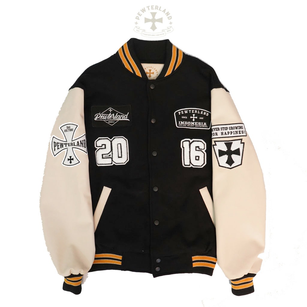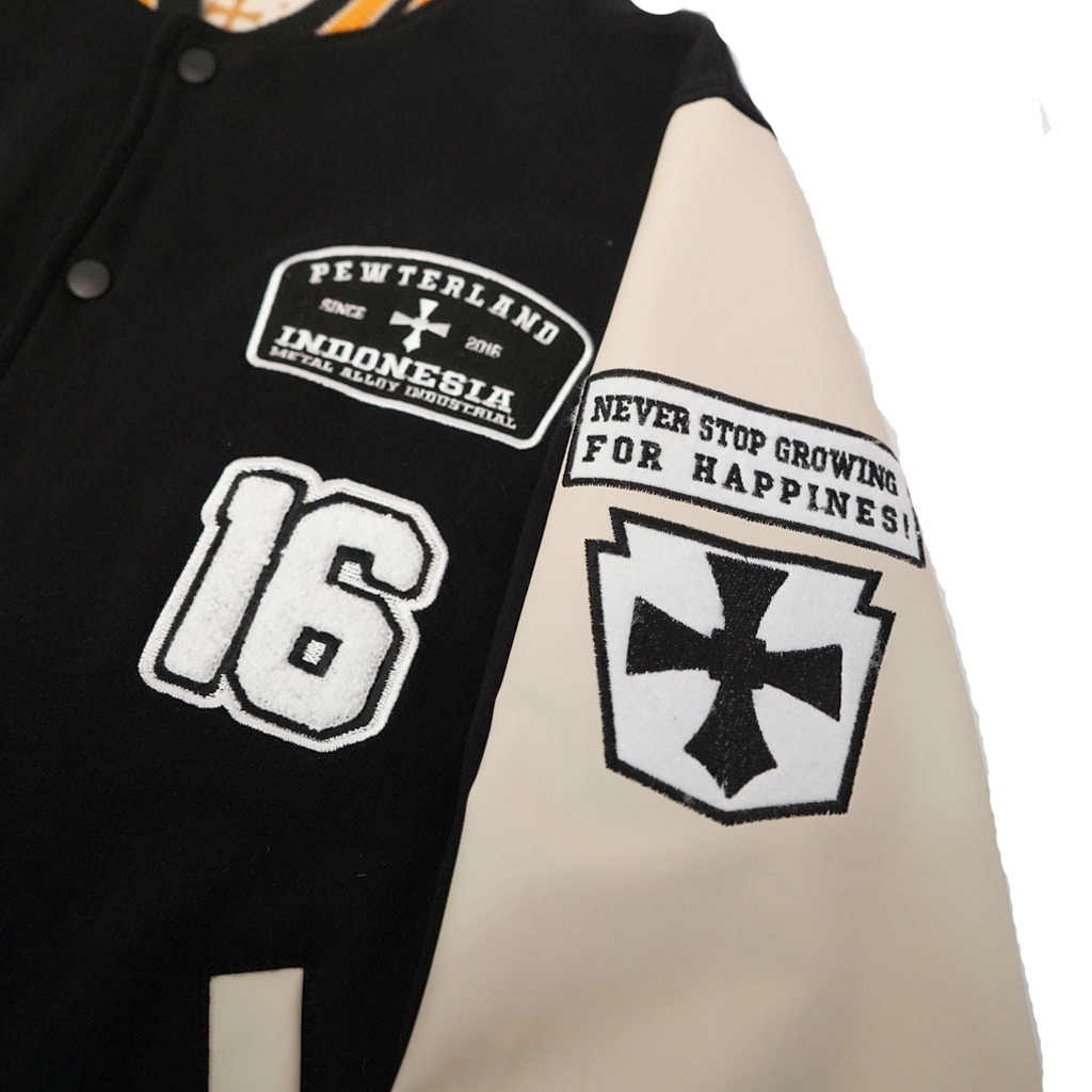 Pewterland Jaket Varsity Never Stop Growing Jacket Original Pria dan Wanita