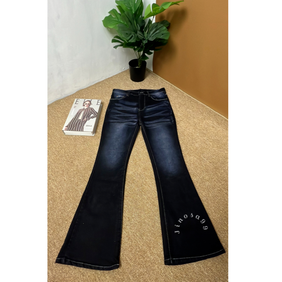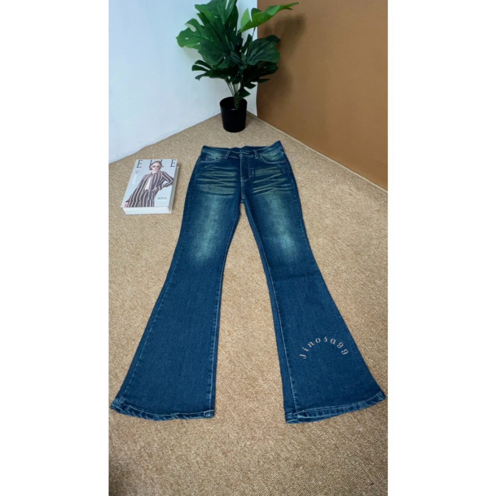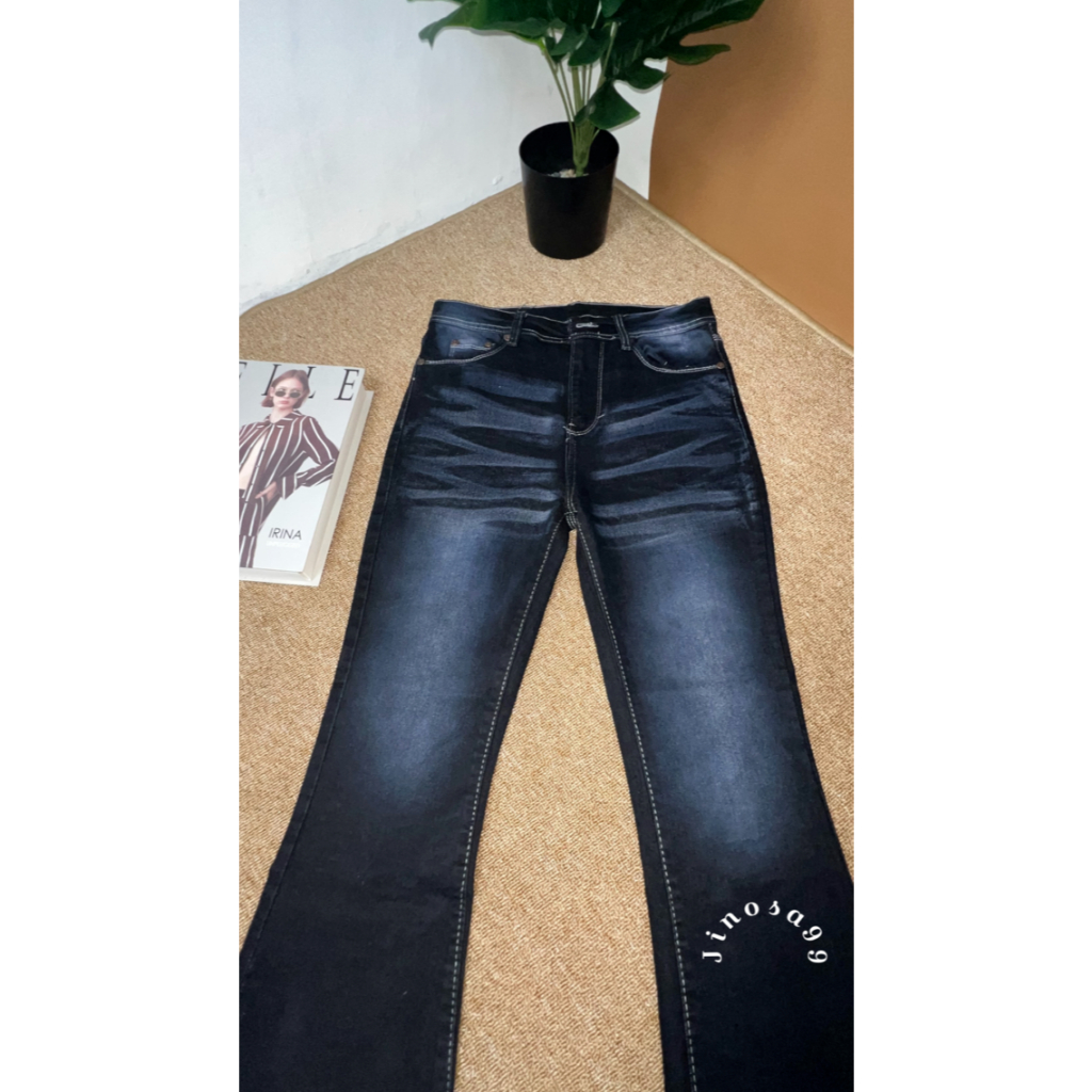 Celana Jeans Cutbray Wanita Highwaist Stretch Premium || Cutbray Flared Kekinian Retro Korea || Celana Panjang Jeans Wanita Black Wash Whisker Anti Ngatung