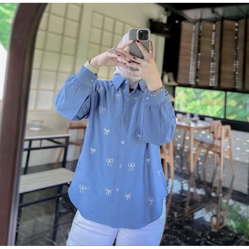 KEMEJA KEKINIAN LAURA MOTIF BORDIR PITA /KEMEJA POLO LINEN MOTIF BORDIR KEKINIAN/BLOUSE KOREAN KEKINIAN