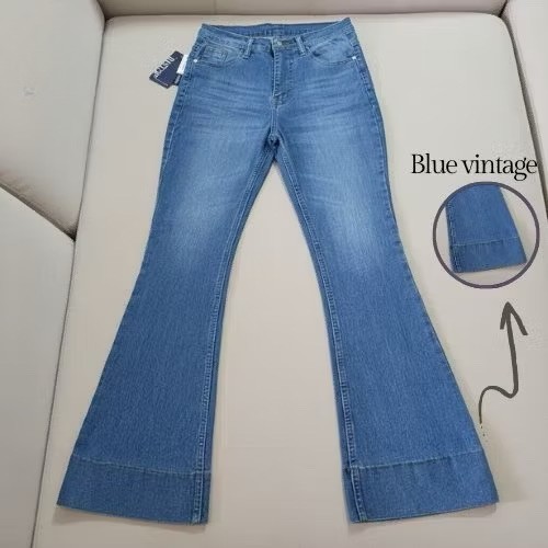 Jennie-Highwaist Cutbray Jeans Celana Flare Panjang Stretch Wanita Retro Vintage Lipat Bawah