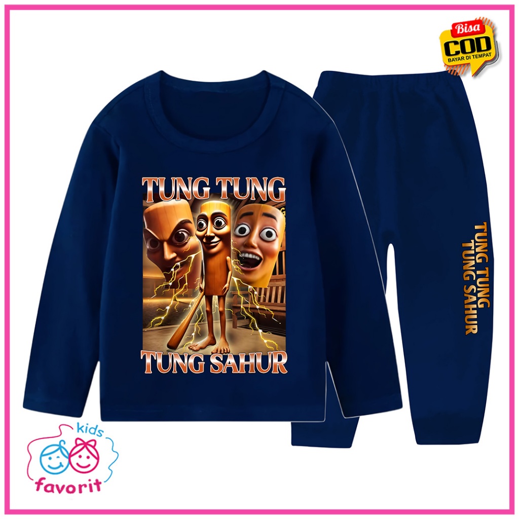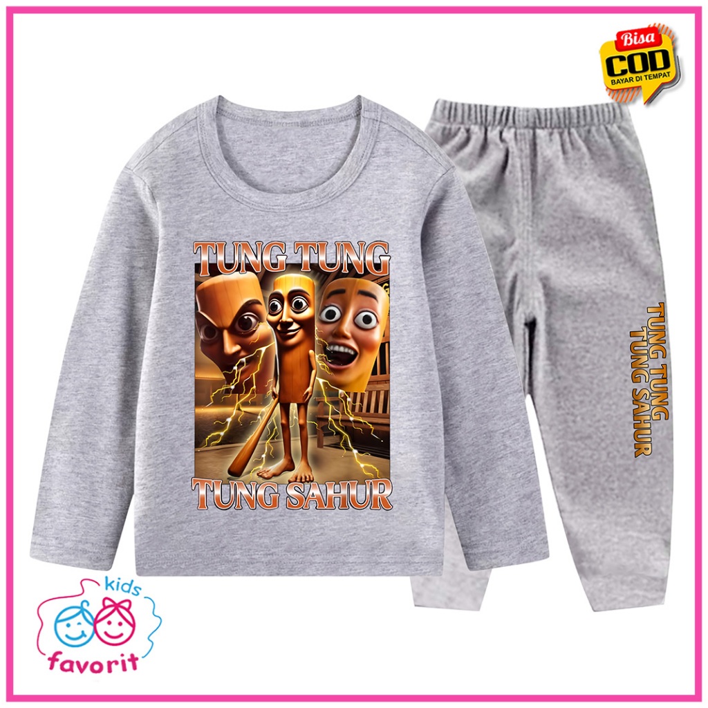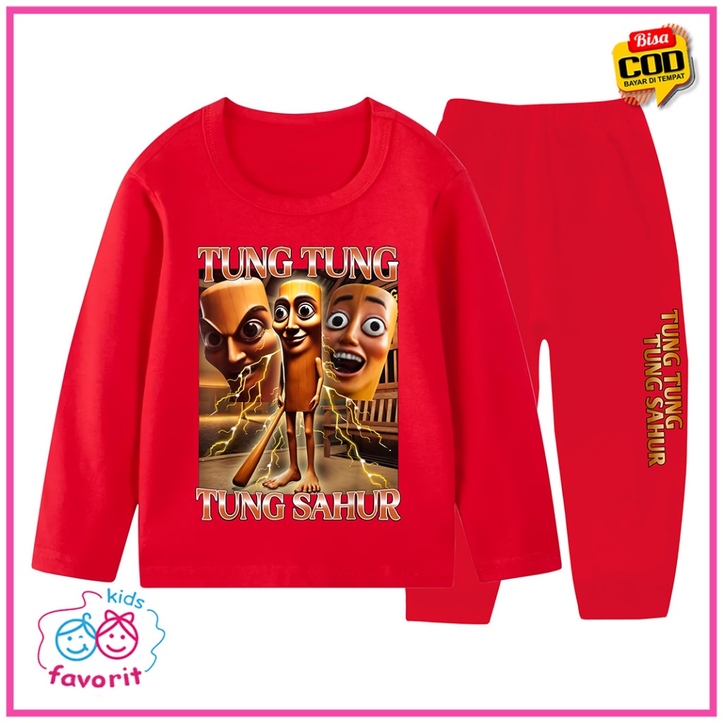 TUNG TUNG TUNG SAHUR Piyama Setelan Anak Laki Laki Lengan Panjang Celana Panjang 3 Tahun - 10 Tahun