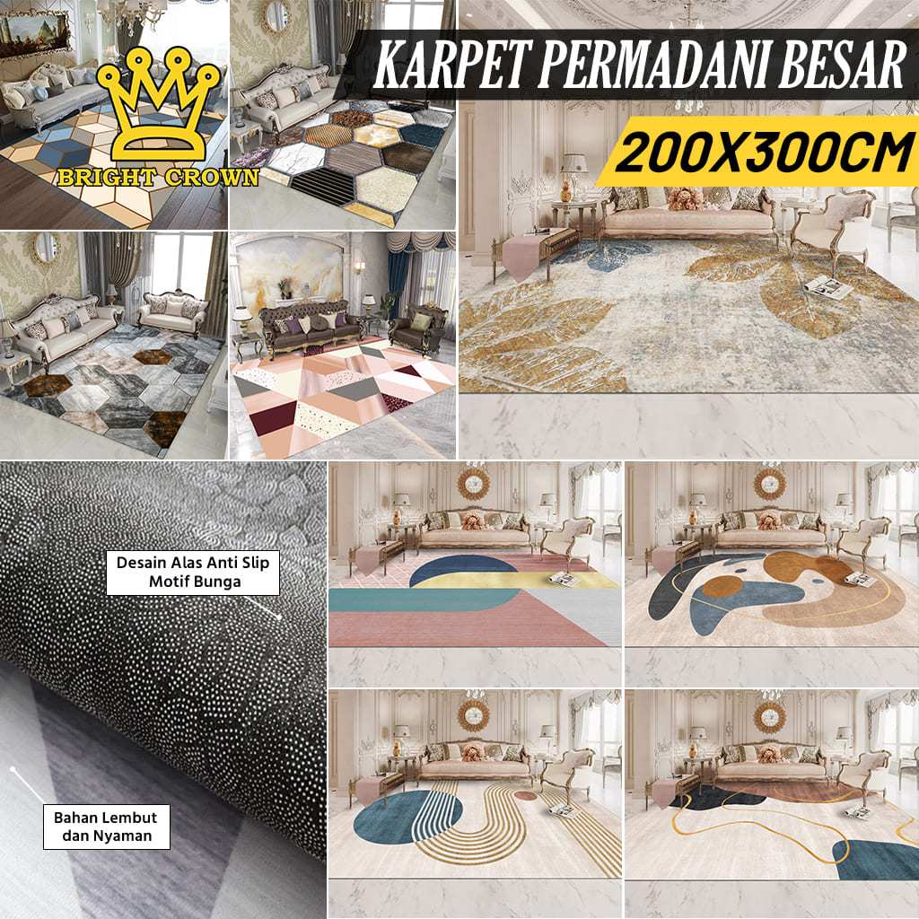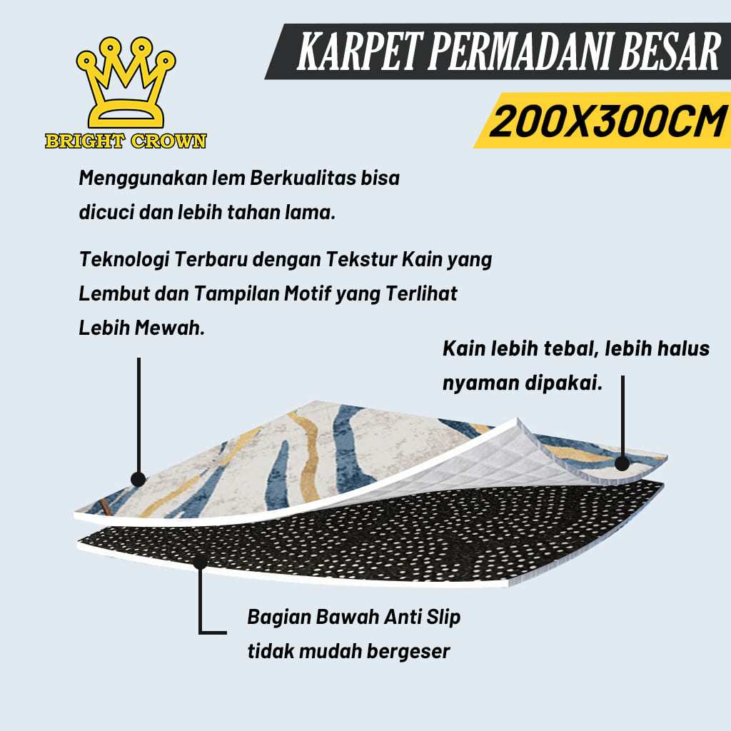 Karpet Bright Crown Beli Lokal Lantai Premium 200X300Cm Polyester Anti Slip High Quality