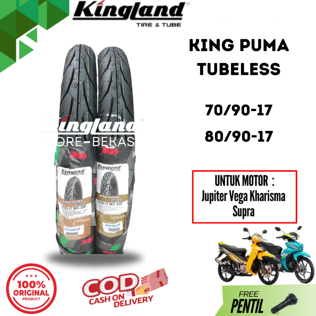 Ban Tubeless Kingland Puma Ukuran 70/90 80/90 Ring 17 untuk Revo Supra Satria Fu Astrea