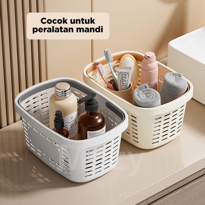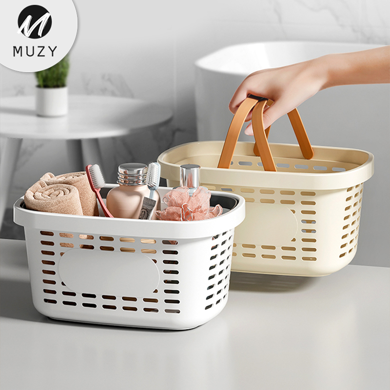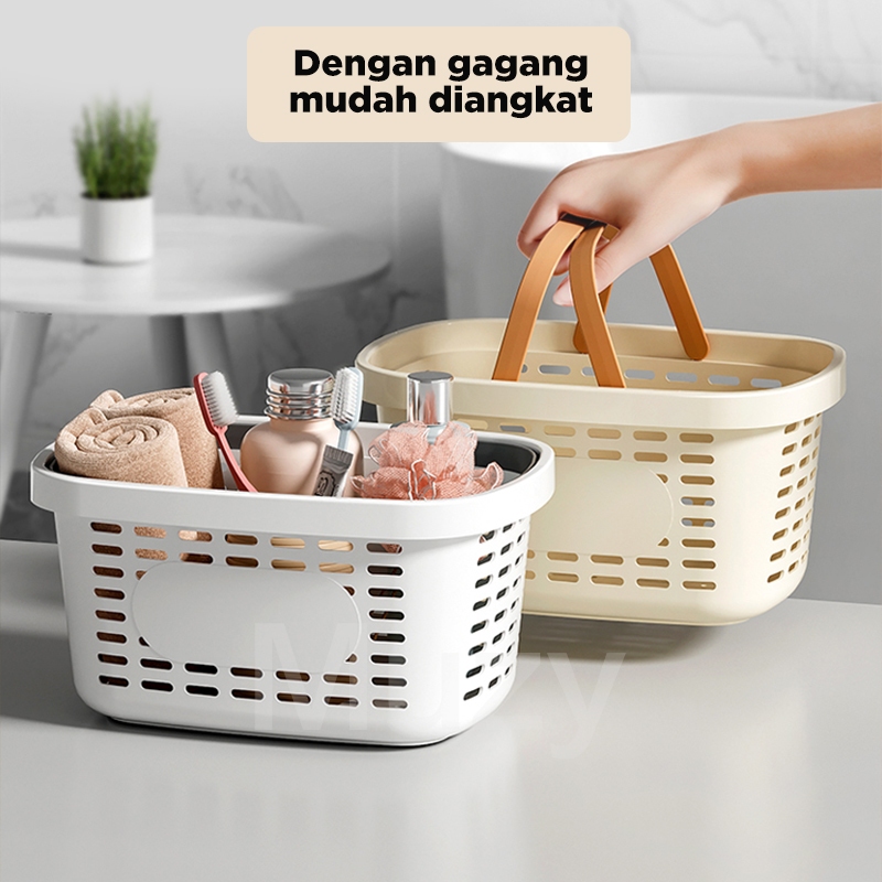 Keranjang Penyimpanan Muzy Kamar Mandi Organizer Serbaguna Pegangan Basket Aesthetic Hsb802
