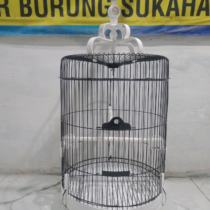 SANGKAR BESI BULAT JUMBO QUEENIE BUAT BURUNG PARUH BENGKOK JALAK KACER DLL UKURAN LEBAR 42 CM PENGIRIMAN SERURUH INDONESIA - PUTIH