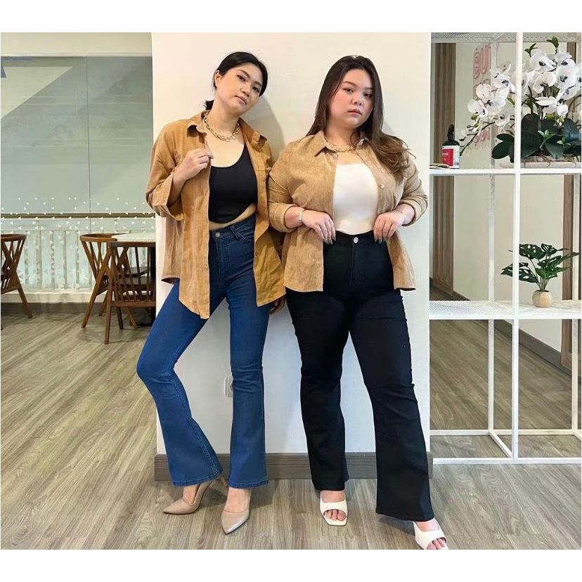 sundaysweet - Celana Cutbray Retro Jumbo Melar Wanita Kekinian - Highwaist Celana Cutbray Jeans Bigsize Muat BB 100Kg