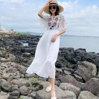 Grosir Best Seller Maxi Long Dress Summer Boho Baju Terusan Wanita Holiday Liburan Pantai Putih White Bali Beach