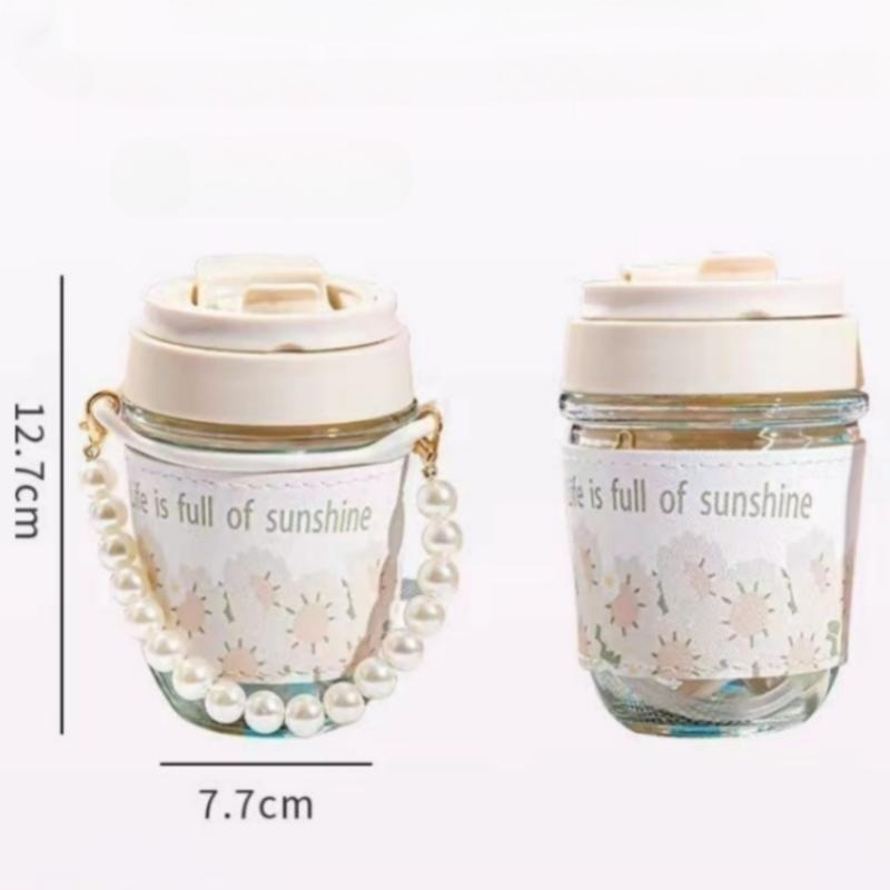 Tumbler kopi glass aesthetic / Botol Minum Kaca Aesthetic / Tumbler Minum Sedotan Tali Mutiara / Gelas Sedotan Gelas Mur