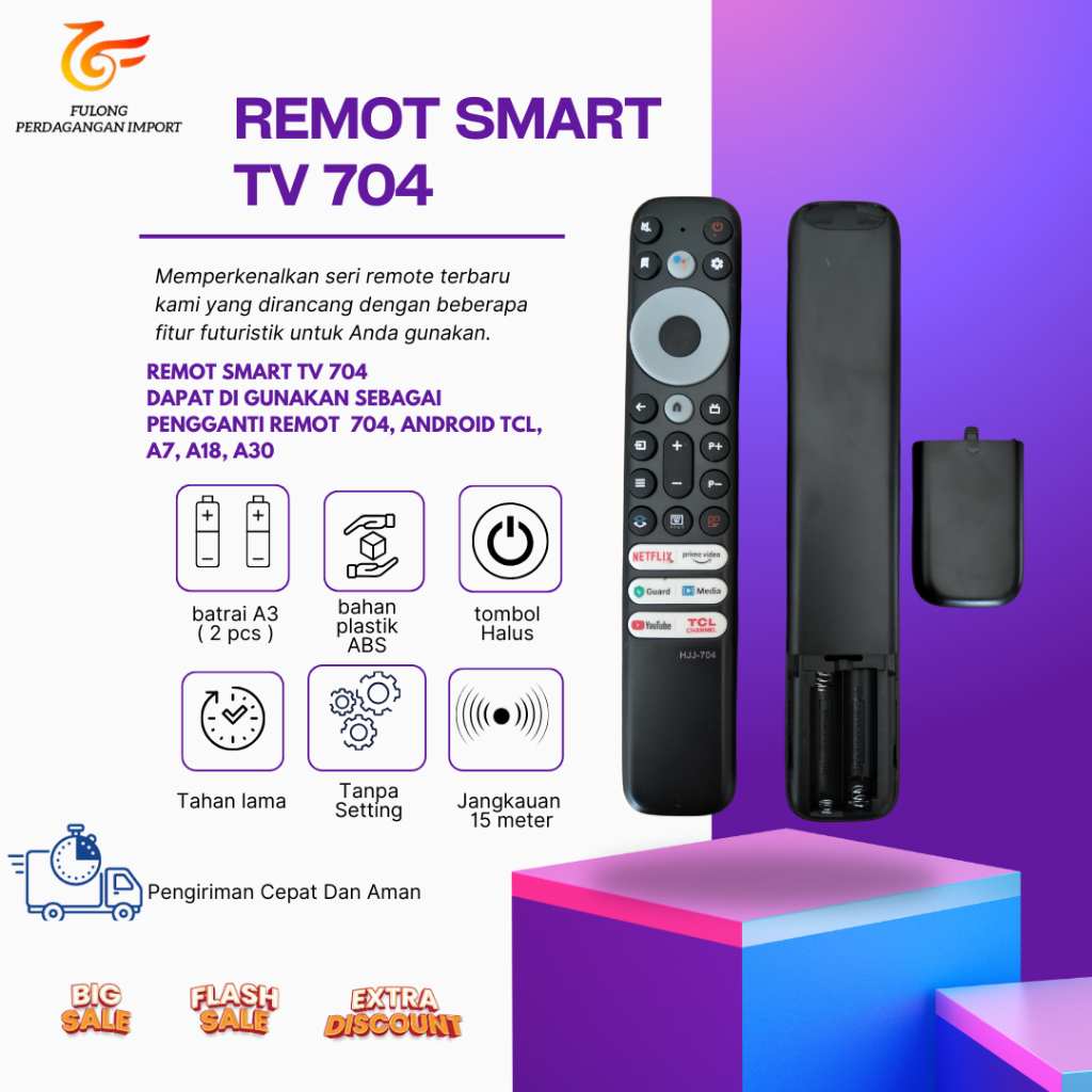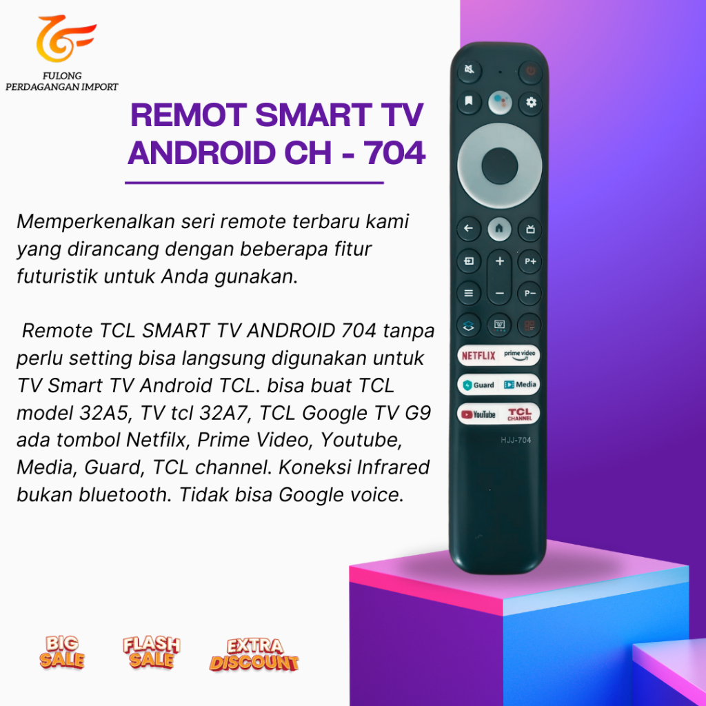 Remot Tcl Tv Smart Android A7 A18 A30 Q725 704 Led Pengganti