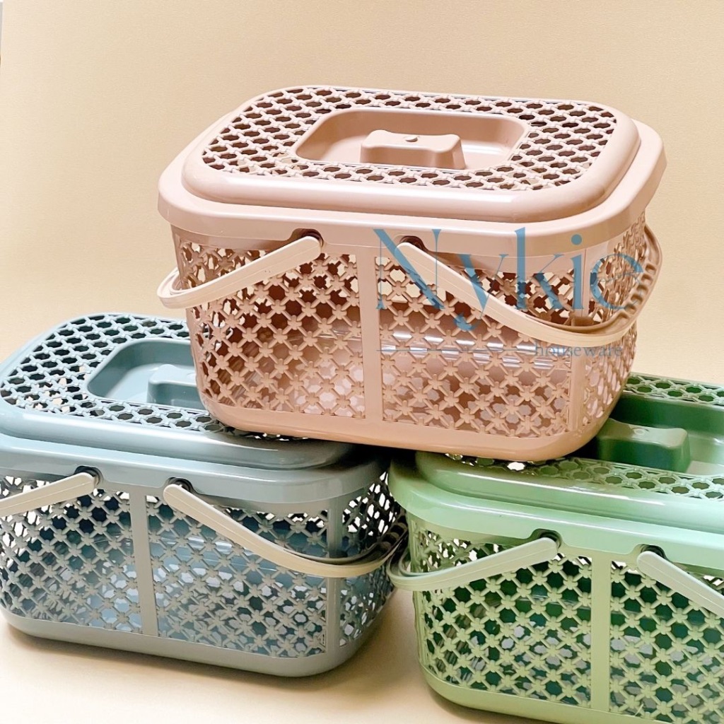 Keranjang Plastik Alicia Tutup Monokrom Elandra Plastic Organizer Serbaguna Untuk Rumah