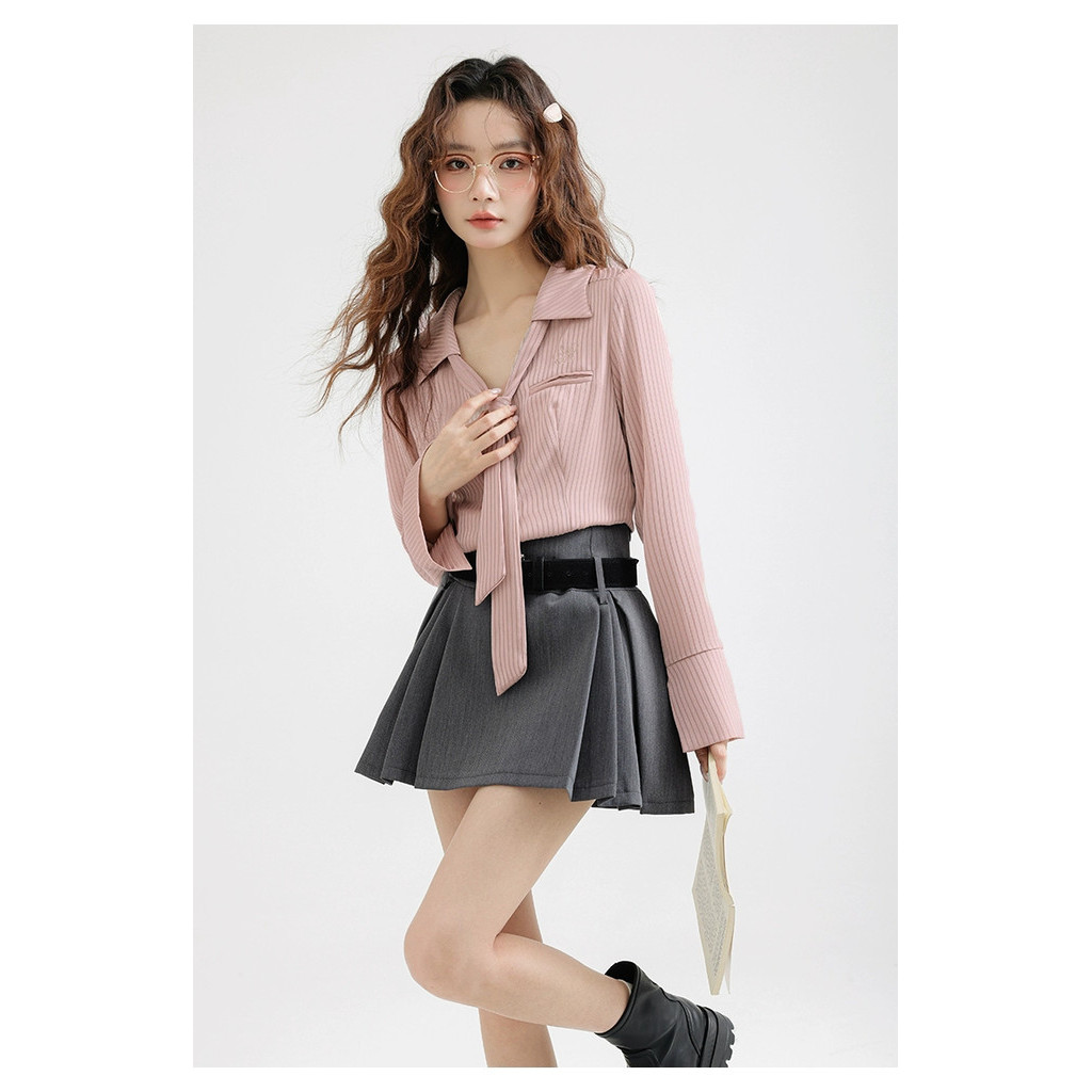 Merah jambu, Biru, Cokelat, Aprikot, Kemeja Putih