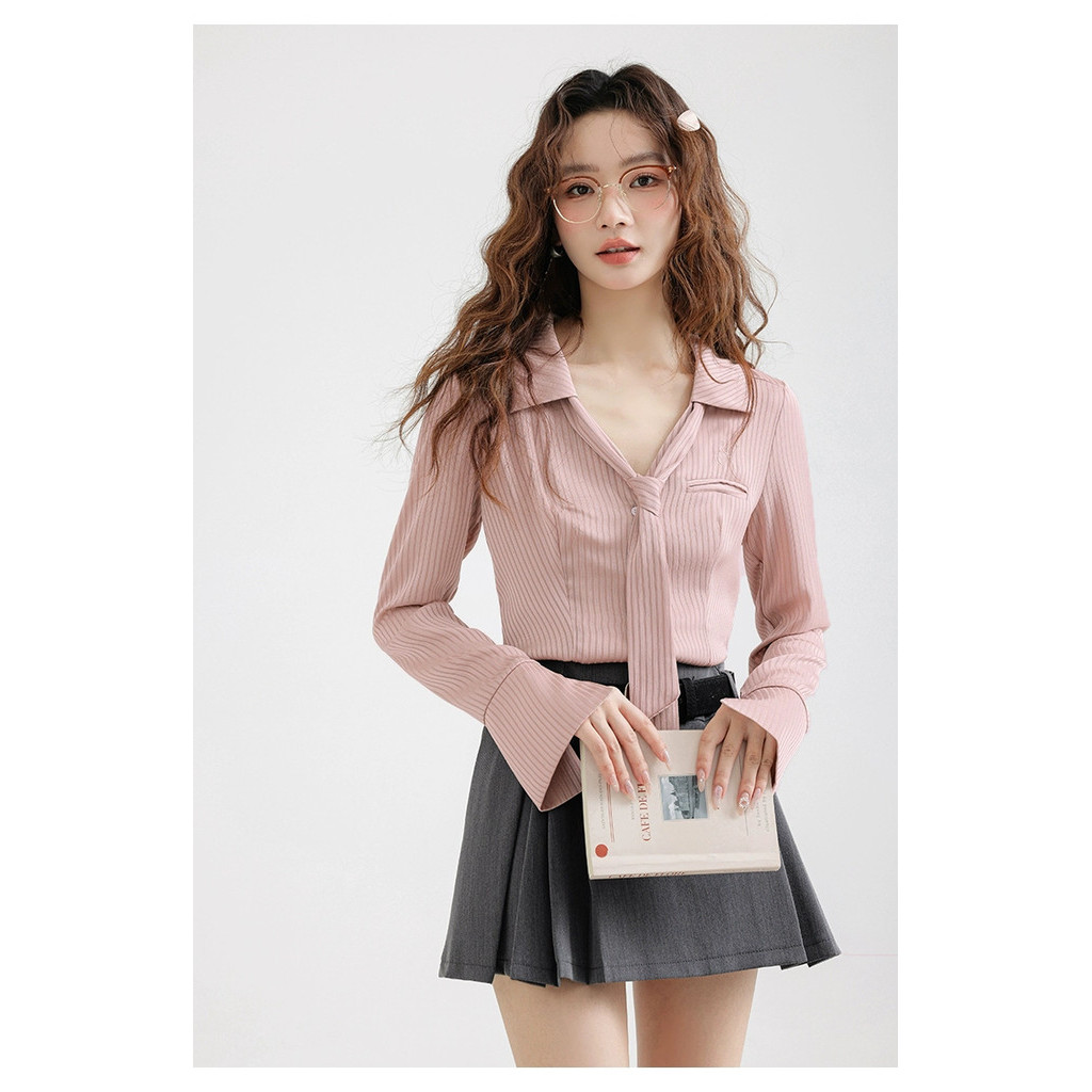 Blus Sifon Meetu Bordir V Neck Lengan Panjang Wanita