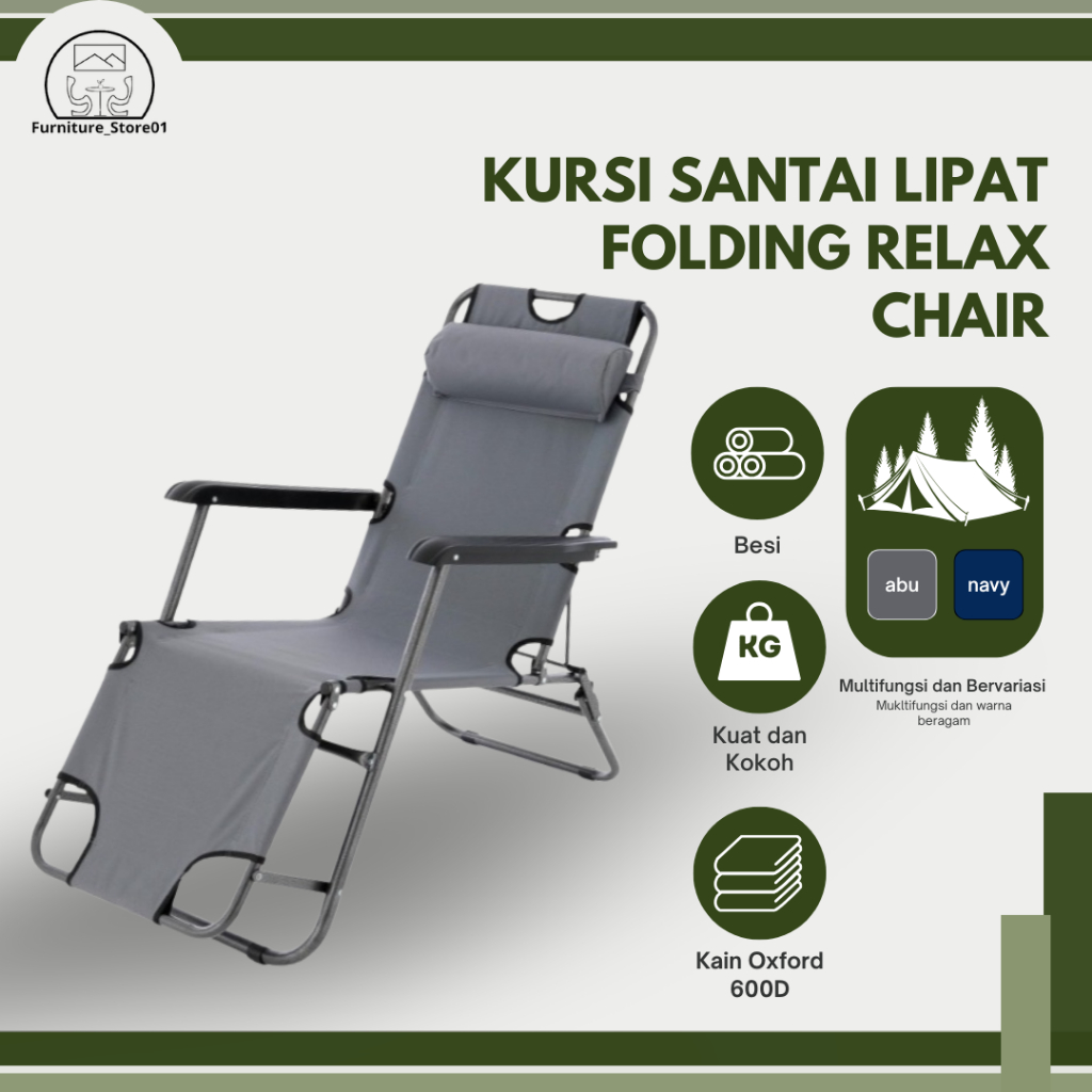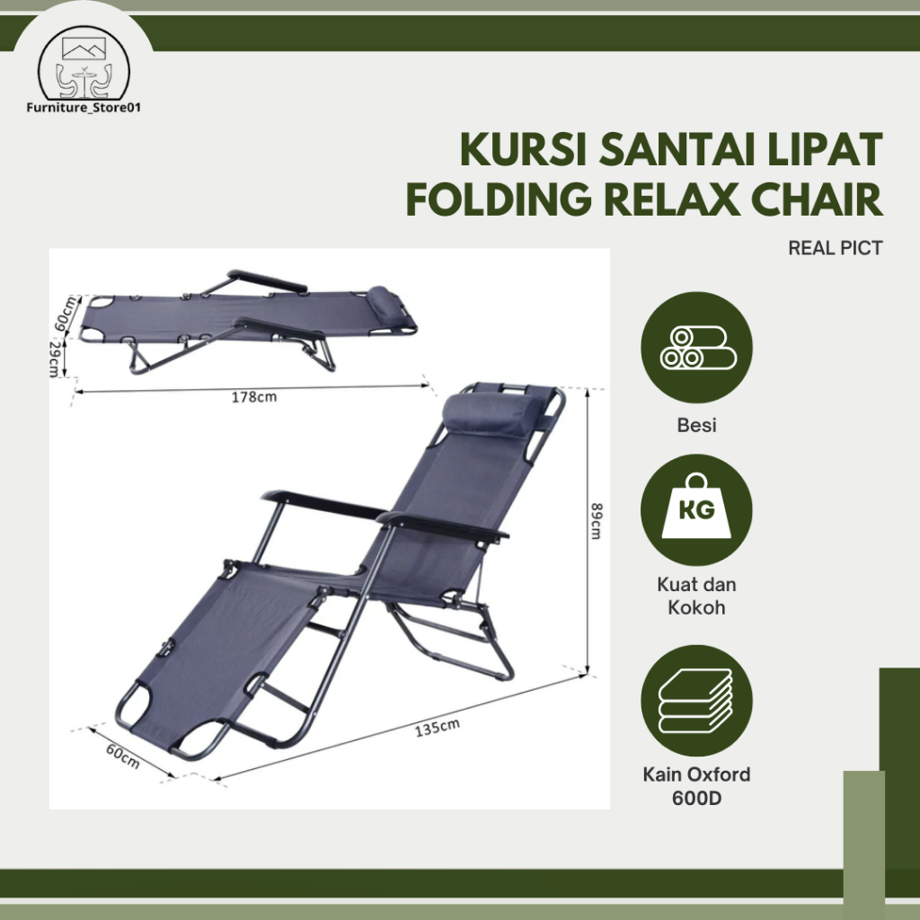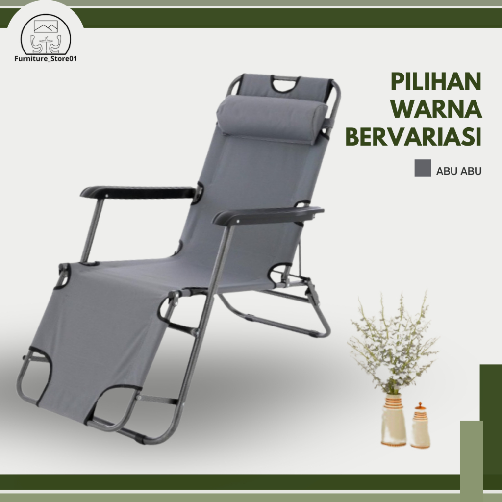 Kursi Lipat Malas / Kursi Santai / Kursi Malas Folding Termurah Cocok untuk Lansia Bantal Sandaran Punggung Nyaman & Tidak Mudah Gerah Bahan Besi Kokoh & Kain Berkualitas