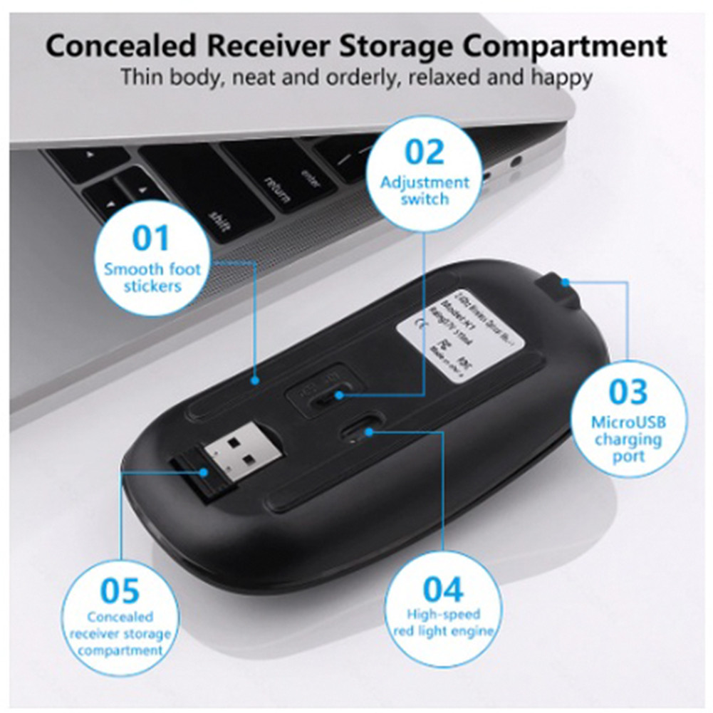 Mouse Wireless Gaming Silent Click Rechargeable Rgb Slim 24ghz Led Backlit Isi Ulang