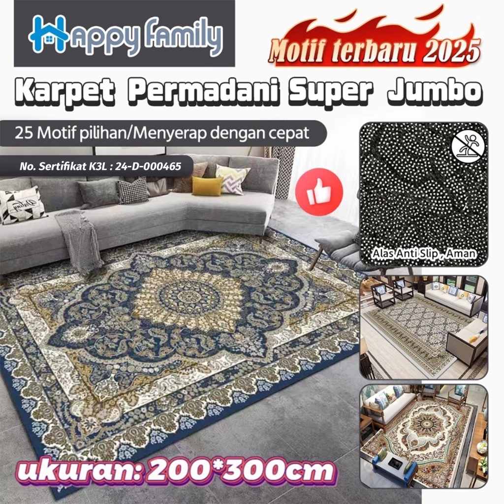 Karpet Hf Lokal Lantai Permadani Eropa Premium 200X300Cm Polyester Anti Slip Ruang Tamu