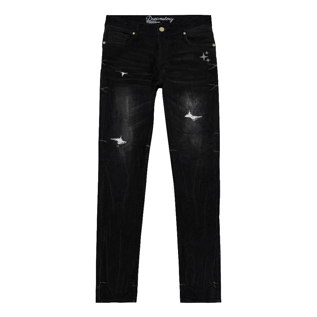 Celana Panjang Jeans Slimfit Pria Dream Story Skinnyfit Black Wash Denim Bordir